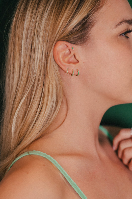 Daylight Hoop - Emerald - Yellow Gold - Single Earring - 7mm