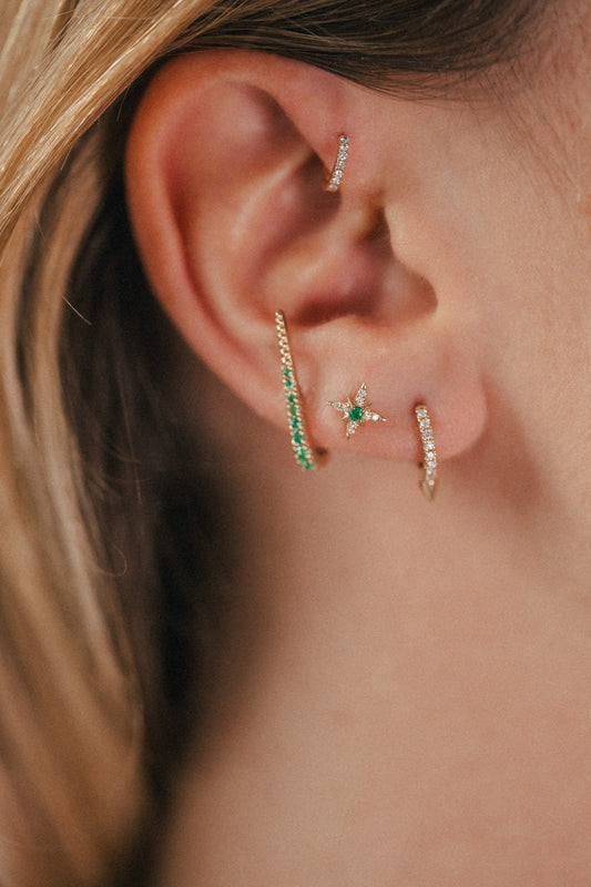 Star Piercing - Emerald - Yellow Gold